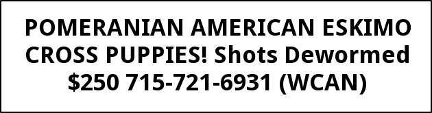 POMERANIAN AMERICAN ESKIMO CROSS PUPPIES! Shots Dewormed $250 715-721-6931 (WCAN)
